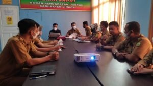 Daik Lingga – Bupati Lingga, Muhammad Nizar pimpin rapat koordinasi terkait Peraturan Bupati (Perbup) dan Optimalisasi Pendapatan Asli Daerah (PAD) tahun 2021, diruang rapat Badan Pendapatan Daerah (Bapenda) Kabupaten Lingga, Selasa (25/01/2022). Adapun realisasi PAD tahun 2021 mengalami peningkatan 17 persen dari target yang telah ditentukan.