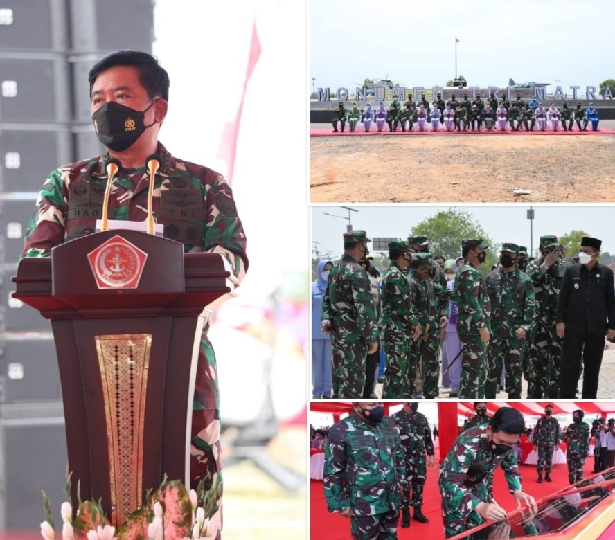 Tanjungpinang – Panglima Komando Daerah Militer (Pangdam) I/Bukit Barisan (BB) Mayjen TNI Hassanudin, S.I.P.,M.M., dan Komandan Korem (Danrem) 033 Wira Pratama (WP) Mendampingi peresmian Makogabwilhan I,II,III dan monumen Tri Matra oleh Panglima TNI Marsekal Hadi Tjahjanto S.I.P., di Pulau Dompak, Kecamatan Bukit Bestari, Kota Tanjung Pinang, Kepulauan Riau. Selasa (12/10/2021).