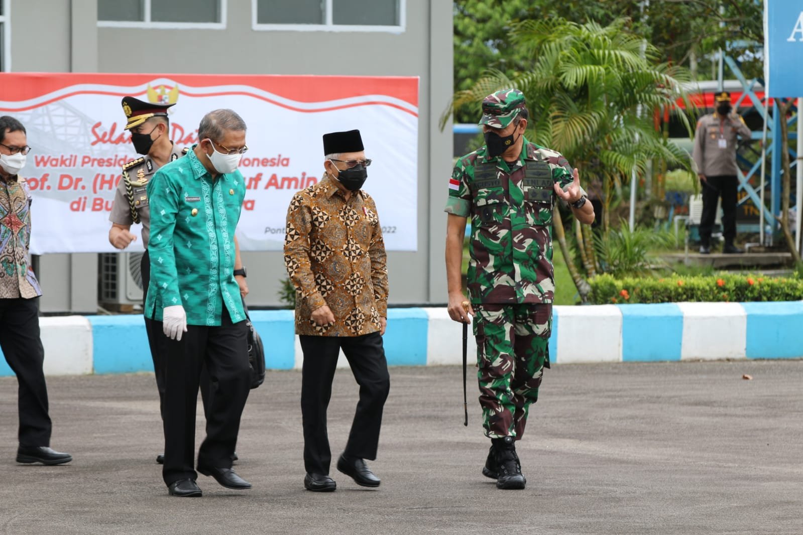Pontianak, Kamis (22/9/22) – Pangdam XII/Tanjungpura, Mayjen TNI Sulaiman Agusto, S.I.P., M.M., bersama dengan Kapolda Kalbar, Irjen Pol Suryanbodo Asmara memimpin Pengamanan VVIP RI-2. Seluruh agenda Wakil Presiden Republik Indonesia Prof. Dr. (H.C.) K.H. Ma’ruf Amin selama dua hari di Kalimantan Barat berlangsung aman dan lancar.