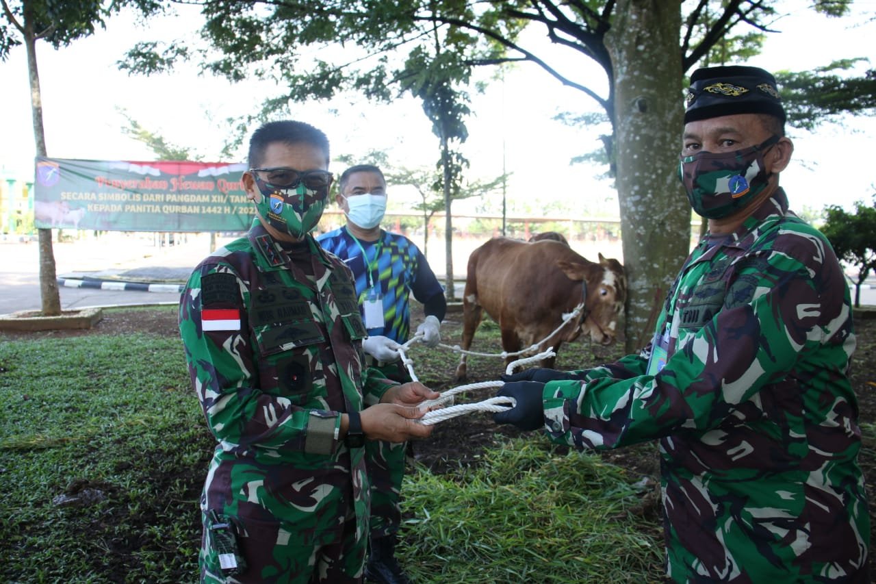 Acara penyerahan hewan qurban dihadiri para pejabat utama Kodam XII/Tpr. Adapun tema perayaan kali ini, “Maknai Idul Adha 1441 H/2020 M dengan Meningkatkan Semangat Gotong Royong dan Rela Berkorban di Tengah Pandemi Covid-19 menuju Normal Baru”.