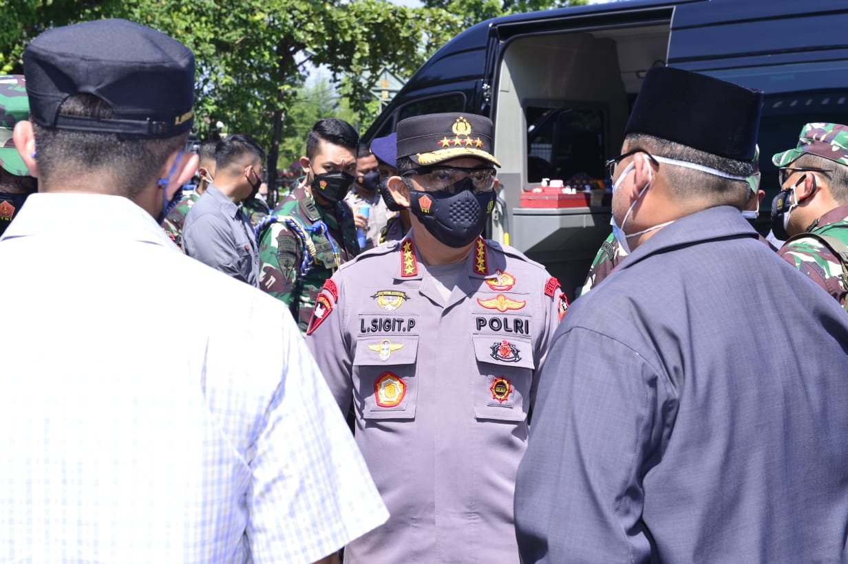 Jakarta – Panglima TNI Marsekal Hadi Tjahjanto dan Kapolri Jenderal Polisi Listyo Sigit Prabowo mengunjungi dua lokasi kegiatan vaksinasi massal di Jakarta, Minggu (4/7/2021).
