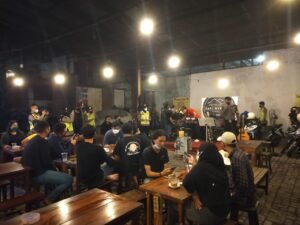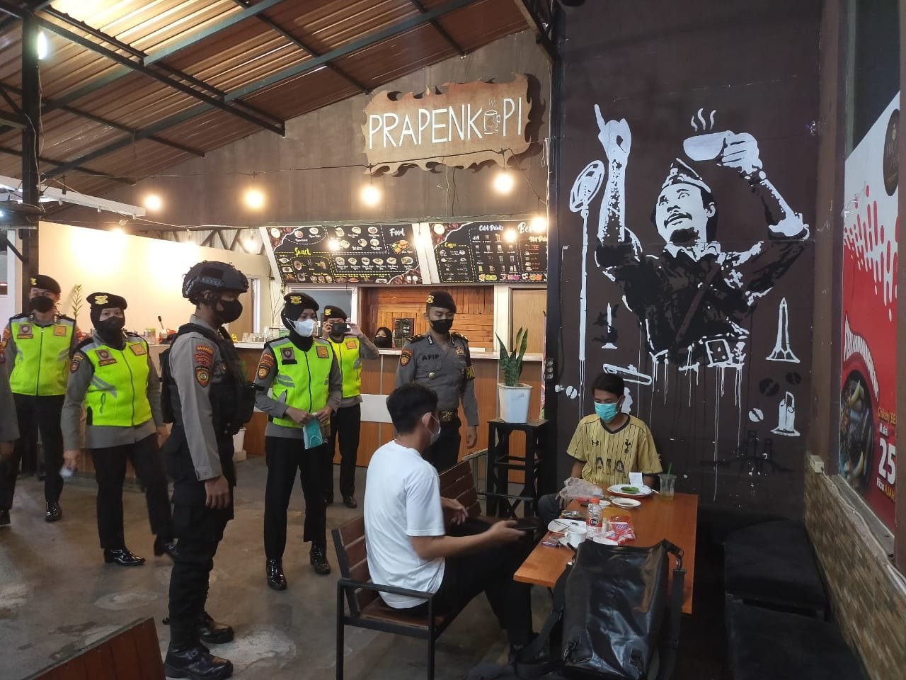 Surabaya – Ditsamapta Polda Jatim melaksanakan giat Patroli Kegiatan Rutin Yang Ditingkatkan (KRYD) dalam rangka penegakkan protokol kesehatan di beberapa cafe dan warung kopi di Surabaya, pada Selasa (11/1/2022) malam.