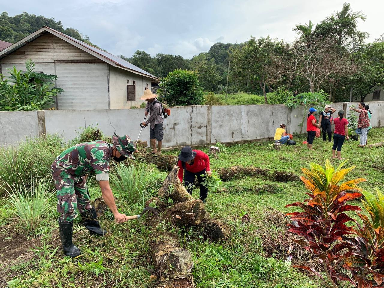 Dansatgas mengatakan 9 orang personil Pos Koki Jagoi Babang dipimpin Sertu Langgeng melaksanakan kegiatan Karya Bakti Gotong Royong Pembersihan Lingkungan SDN 01 Jagoi Babang bersama dengan Siswa-siswi, Guru dan Wali Murid SDN 01 Jagoi Babang.