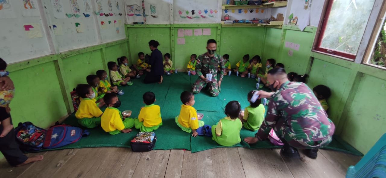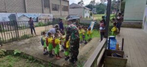 Sambas, Kalbar – Satgas Pamtas Yonif Mekanis 643/Wns terus memperluas sasaran program peduli kesehatan di wilayah perbatasan, mulai dari masyarakat umum sampai lembaga pendidikan anak usia dini (PAUD).