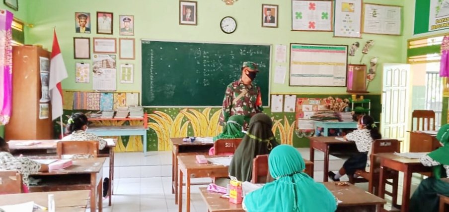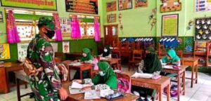 Blitar – Babinsa Koramil Tipe B 0808/04 Sanankulon Kodim 0808/Blitar, melaksanakan pemantauan Pembelajaran Tatap Muka ( PTM ) secara langsung terhadap siswa SDN Sumberingin dan siswa SDN Jeding Kecamatan Sanankulon Kabupaten Blitar, Sabtu (27/11/2021).