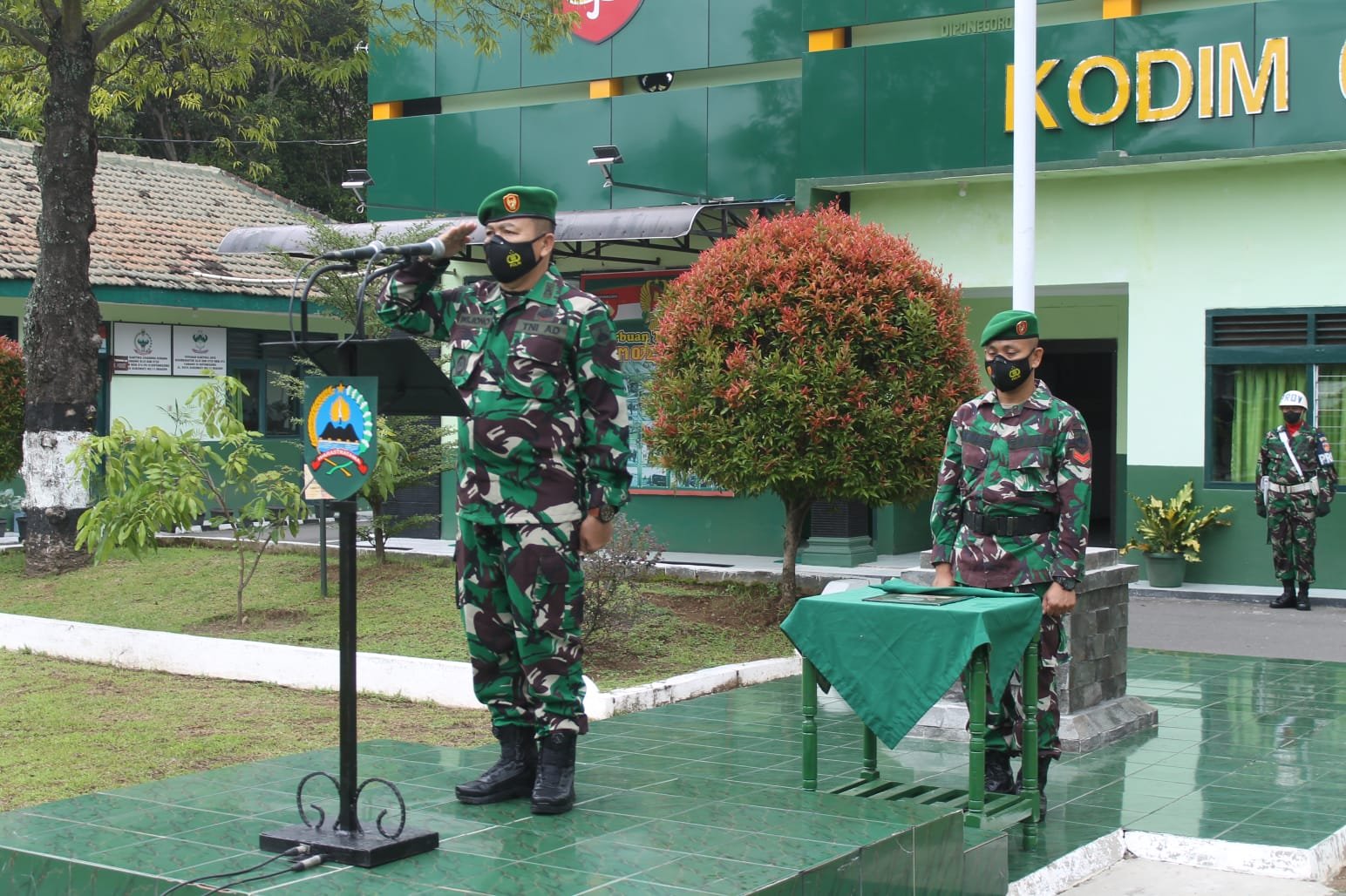 Pada pelaksanaan Upacara Pengibaran Bendera Merah Putih bertindak sebagai Inspektur Upacara Mayor Inf Wijiono Kasdim 0725/Sragen dan sebagai Komandan Upacara Kapten Inf Prihatin Yudo Danramil 02/Karangmalang yang diikuti oleh anggota Kodim 0725/Sragen dengan tetap mengedepankan disiplin protokol kesehatan.