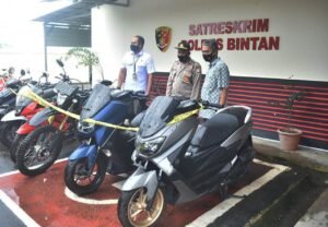 Bintan – Satreskrim Polres Bintan berhasil mengamankan Pelaku Penggelapan Sepeda Motor yang terjadi di 2 (dua) lokasi yang berbeda, seperti yang dijelaskan Kasat Reskrim Polres Bintan dalam Press Release yang dilaksanakan di Mako Polres Bintan pada Kamis (22/4/21).