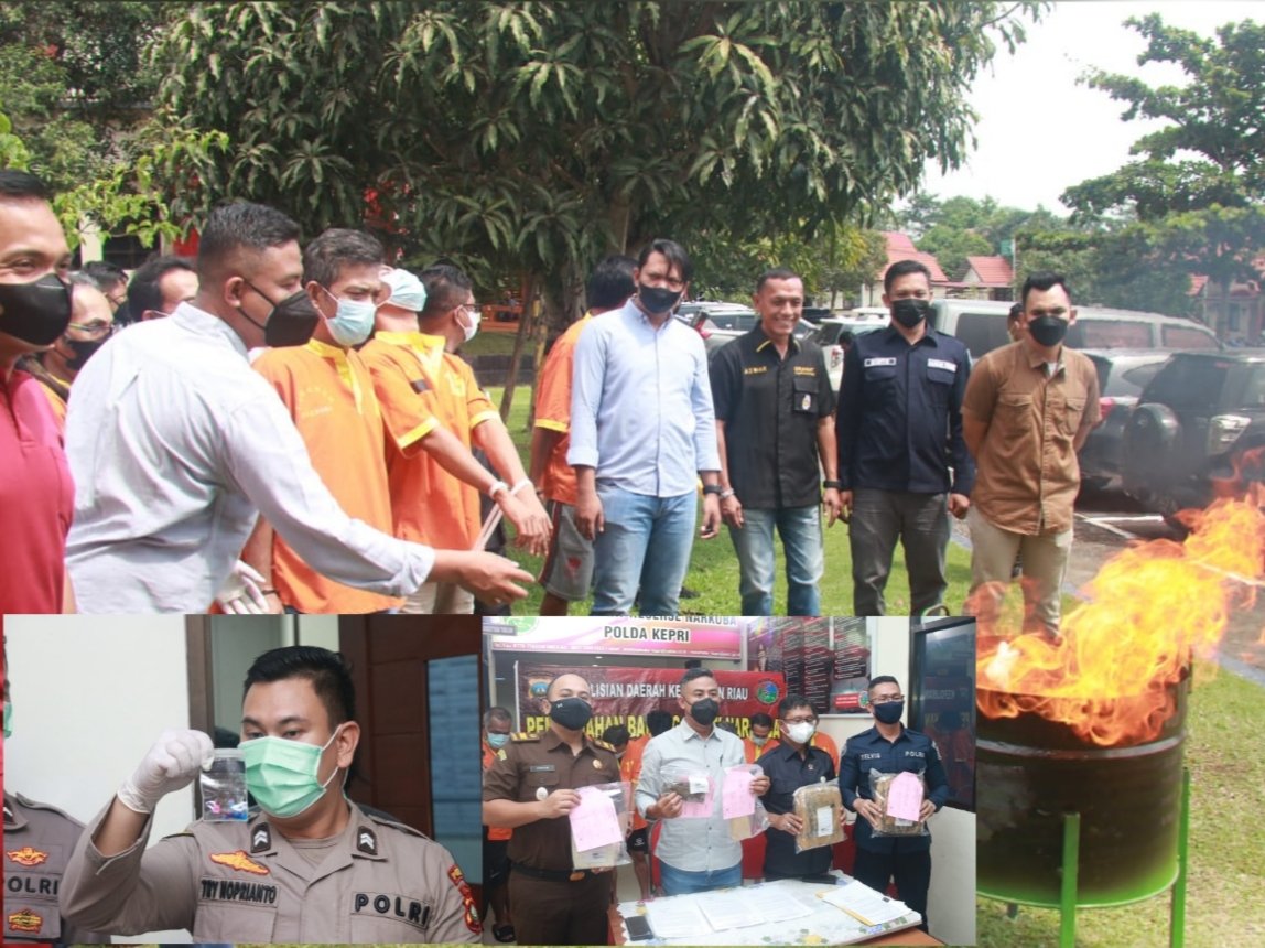 CAHAYANEWSKEPRI.COM – Sebanyak 105.79 gram narkotika jenis sabu, 977.34 gram narkotika jenis Kokain dan 2002.54 gram narkotika jenis Ganja dimusnahkan oleh Ditresnarkoba Polda Kepri di depan ruang Binopsnal Ditresnarkoba Polda Kepri dan di Pendopo Polda Kepri. Ucap Panit 2 Unit I Subdit 3 Ditresnarkoba Polda Kepri Ipda Andi Krisnawan S.Pd., M.H.