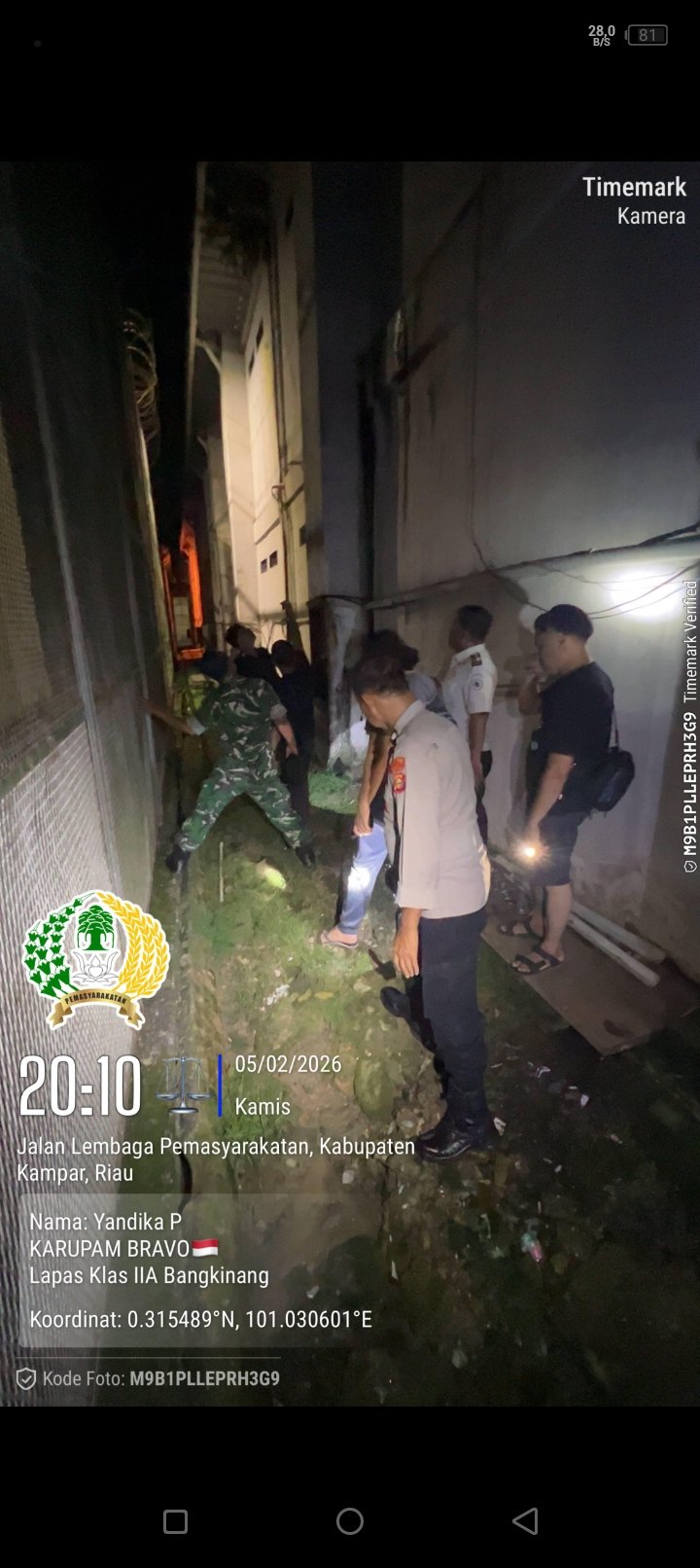 Atas arahan Kepala Lapas, Ka. KPLP bersama personel TNI dan Polri yang sedang melaksanakan piket perbantuan pengamanan langsung menuju lokasi branggang untuk memastikan dan mengamankan barang temuan.