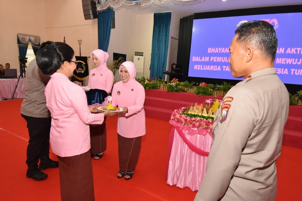 Selanjutnya acara dilanjutkan dengan Syukuran Peringatan Hari Kesatuan Gerak Bhyangkari ke-70 tahun 2022 dengan mengangkat tema ″Bhayangkari berperan aktif dalam pemulihan ekonomi mewujudkan keluarga tangguh Indonesia Tangguh″.