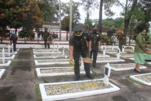Kasdim 0808/Blitar Mayor Inf Leo Eustatius Paurakan usai kegiatan mengatakan, bahwa ziarah dan tabur bunga di pusaran makam para Pahlawan ini merupakan rangkaian kegiatan peringatan HUT ke 58 Korem 081/DSJ Tahun 2021.