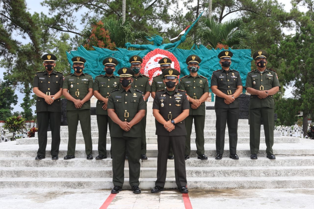 Blitar – Peringati Hari Ulang Tahun ke 58 Korem 081/DSJ, Kodim 0808/Blitar melaksanakan ziarah rombongan dan tabur bunga di TMP (Taman Makam Pahlawan) Raden Wijaya Kota Blitar, Selasa (23/11/2021).