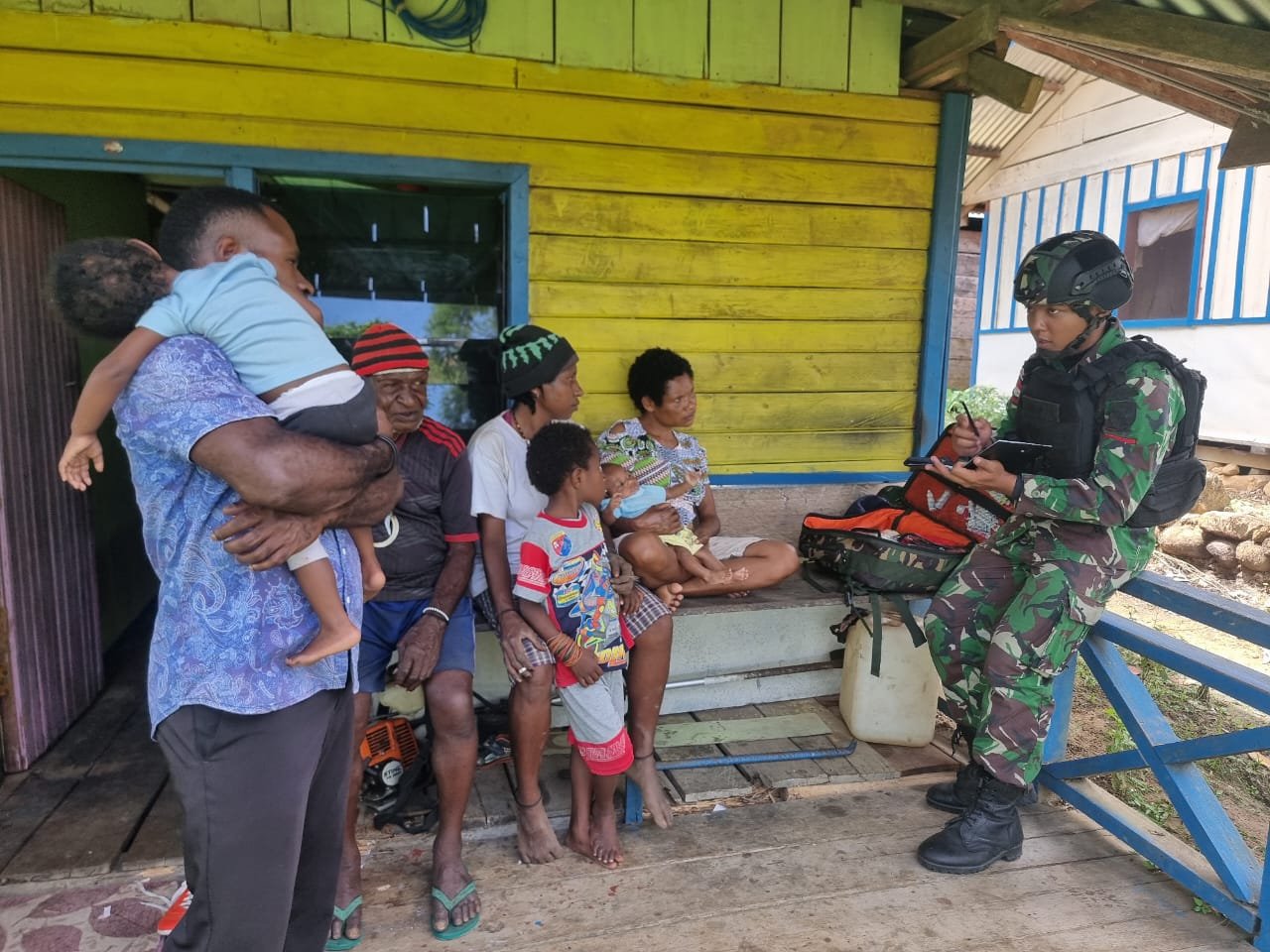 “Saat inipun kami memberikan pelayanan kesehatan kepada keluarga kedua kepala kampung ini, dan ini diterima dengan baik,” pungkas Letda Inf Indar Sinaga.