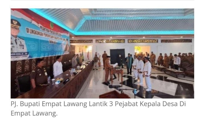 EMPAT LAWANG, SUMSEL – Disela kesibukannya Penjabat Bupati Empat Lawang, Fauzan Khoiri Denin, secara resmi melantik tiga penjabat kepala desa dalam upacara pelantikan yang berlangsung di Pendopoan Rumah Dinas Bupati Empat Lawang, pada Senin pagi (6/01/2025).