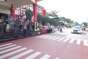 CAHAYANEWSKEPRI.COM – Dalam penyerahan secara simbolis, Kapolda Kepri, Danrem 033/WP, Danlantamal IV Tanjungpinang, Kabinda dan Wakapolda Kepri menyerahkan bantuan kepada perwakilan Ibu rumah tangga dan buruh bangunan. Selanjutnya Kapolda Kepri melepas rombongan kendaraan TNI-Polri yang akan menyalurkan bantuan sosial kepada masyarakat yang membutuhkan dan terdampak pelaksanaan PPKM darurat.