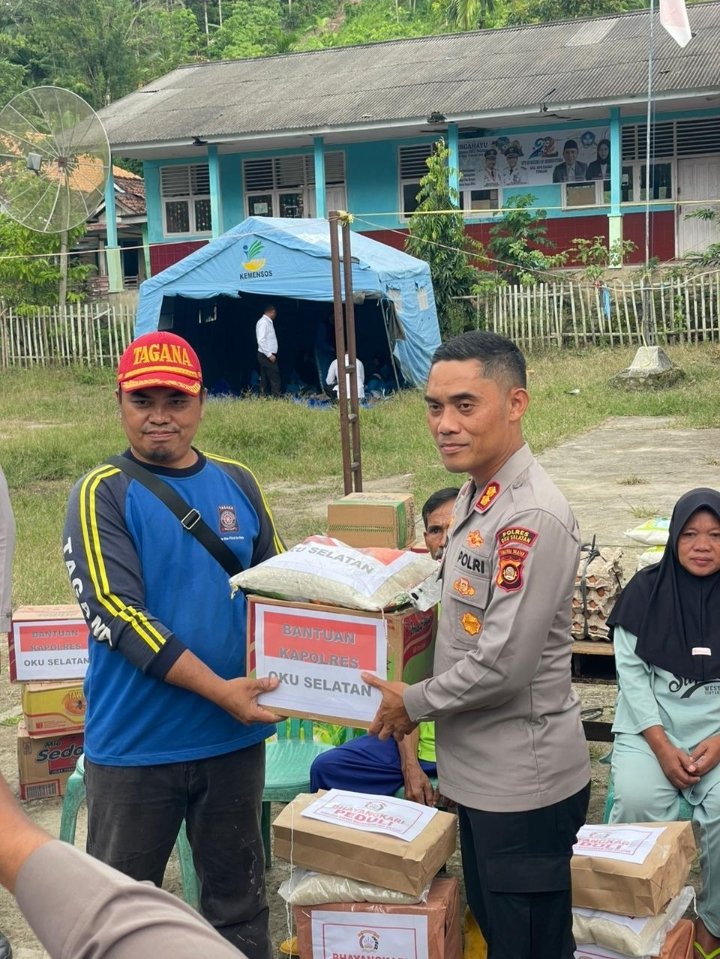PALEMBANG, (CNK) — Kepolisian Daerah Sumatera Selatan melalui Polres Ogan Komering Ulu Selatan bergerak cepat menyalurkan bantuan kemanusiaan kepada masyarakat terdampak banjir bandang dan tanah longsor di Dusun Manduriang, Desa Simpang Sender Utara, Kecamatan Buay Pematang Ribu Ranau Tengah (BPRRT), Kabupaten OKU Selatan.