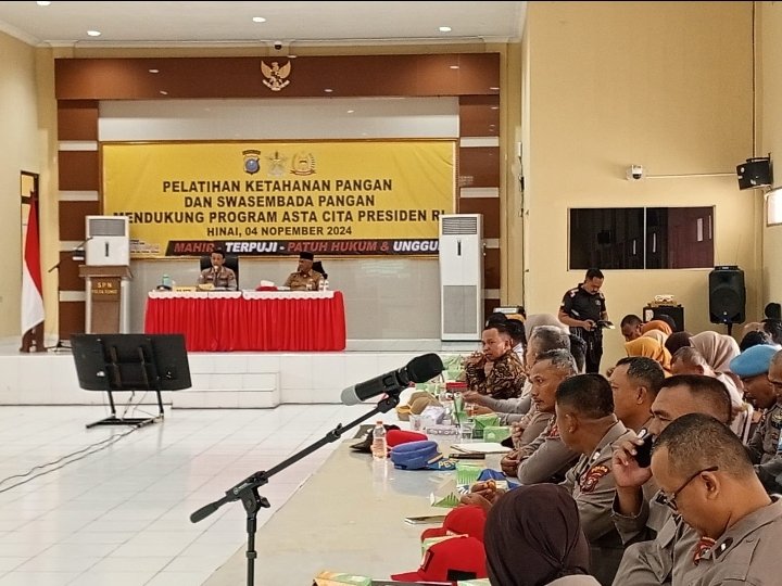 LANGKAT, 2 November 2024 – Polres Langkat mengadakan kegiatan pelatihan ketahanan dan swasembada pangan di Gedung RS Soekanto, Sekolah Polisi Negara (SPN) Polda Sumut. Pelatihan ini dipimpin langsung oleh KA SPN Polda Sumut, Kombes Pol Iwan Setyawan, S.H., S.I.K., M.Hum., dengan menghadirkan sejumlah narasumber dari berbagai instansi terkait, termasuk Dinas Pertanian dan Peternakan Kabupaten Langkat.