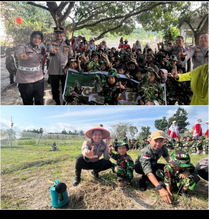 “Pagi ini kami hadir untuk memberikan edukasi kepada adik-adik tentang Program Green Policing yang digagas oleh Bapak Kapolda Riau. Tujuan utamanya adalah menanamkan pemahaman sejak dini agar anak-anak mencintai alam dan lingkungan, salah satunya melalui kegiatan menanam pohon. Jika kita menjaga alam, maka alam akan menjaga kita,” ujar IPTU Zulfahli.