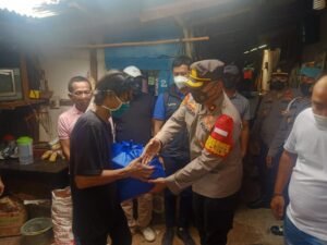 Jakarta – Peduli kemanusiaan, Polsek Kembangan menggelar bakti sosial kepada warga masyarakat yang terdampak wabah Covid-19 di Kembangan Jakarta Barat, Sabtu, (15/1/2022).