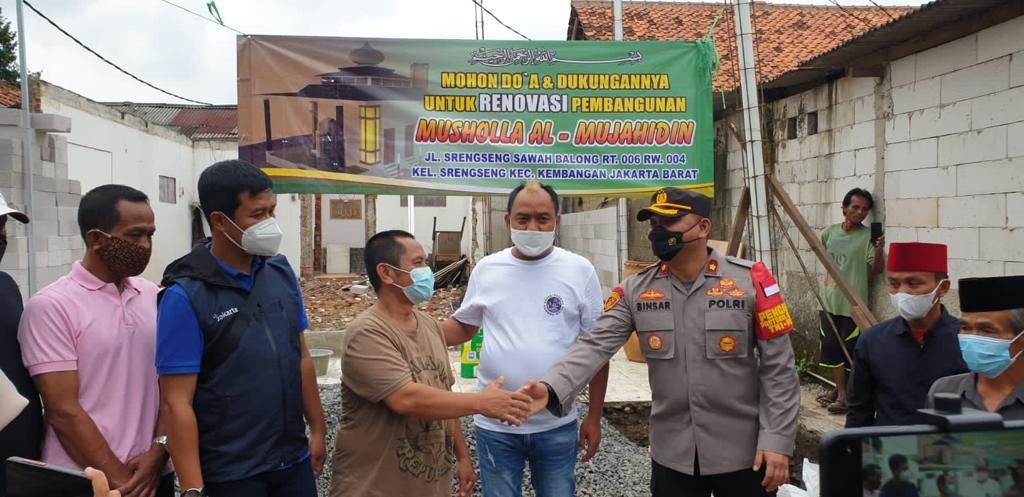 Di ujung kegiatan Kompol Binsar H Sianturi juga memberikan bantuan 20 sack semen untuk pembangunan rumah ibadah (musholla) Al Mujahidin di kampung sawah balong RT. 006/04 Srengseng kembangan Jakarta Barat yang sedang dalam proses pembangunan.