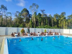 CAHAYANEWSKEPRI.COM – Kegiatan diawali dengan senam peregangan (GC) yang dipimpin oleh Serma Mar M. Abidin dengan tujuan untuk meminimalisir adanya cidera kram pada perut dan kaki saat berenang, setelah itu dilaksanakan pembagian gelombang pelaksanaan latihan renang.