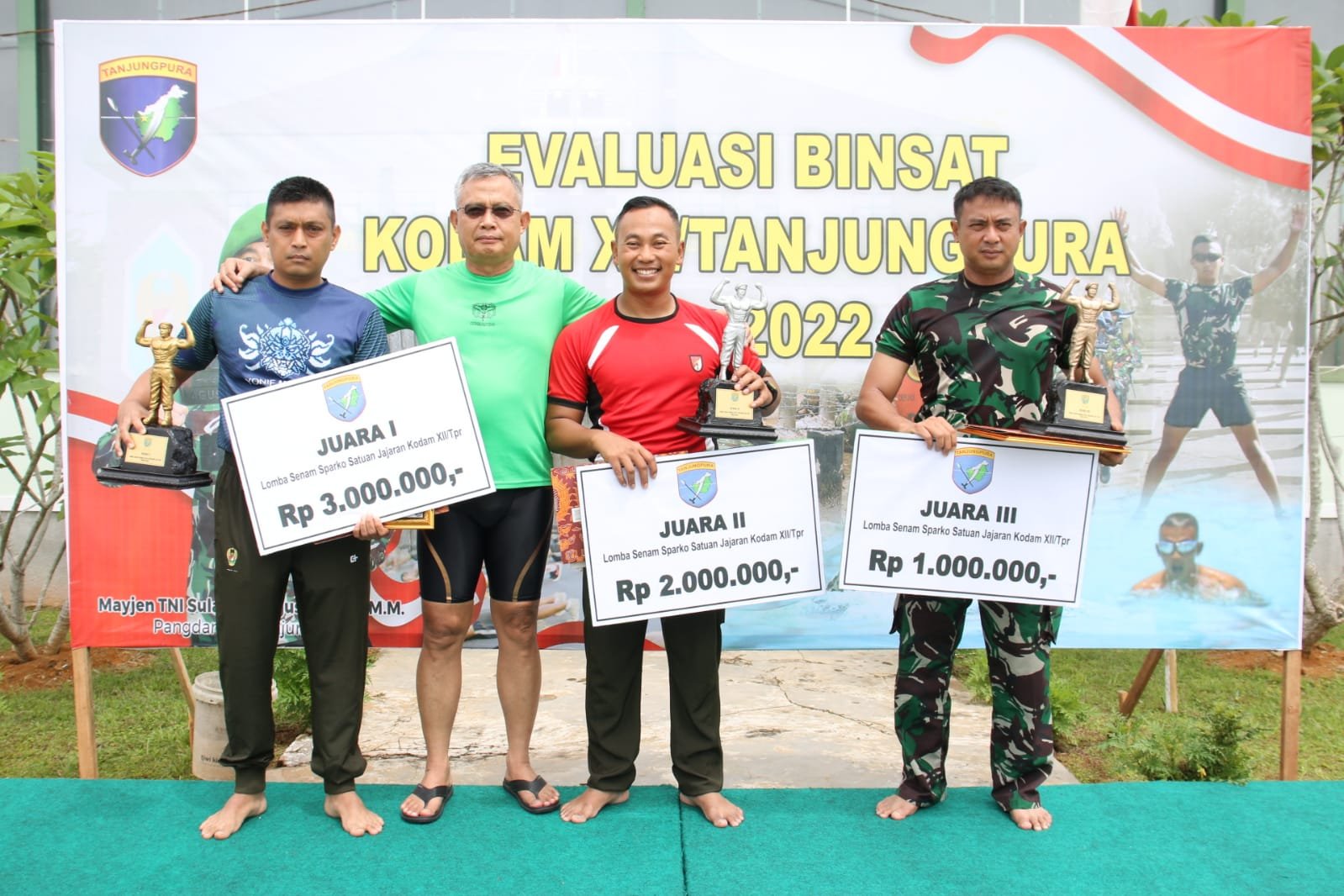 Piala dan hadiah diserahkan oleh Kasdam XII/Tpr serta pejabat utama lainnya. Untuk diketahui, dalam kesempatan tersebut juga diserahkan piala dan hadiah kepada juara lomba senam sparko yang telah dilaksanakan sebelumnya. Adapun satuan yang menjadi juara diantaranya, juara 1 diraih Yonif Mekanis 643/Wns, juara 2 Yonif RK 644/Wls dan juara 3 Yonif R 641/Bru.