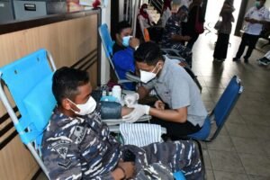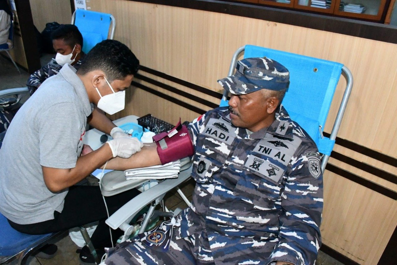 Lantamal IV (Tanjungpinang) – Segenap Prajurit Pangkalan Utama TNI Angkatan Laut Tanjung pinang (Lantamal IV Tanjung pinang) ikut berpatisipasi dalam aksi donor darah yang digelar oleh Panitia Gabungan Korps Sukarela Palang Merah Indonesia (KSR PMI) unit Umarah, Generasi Baru Indonesia (Genbi) dan Himpunan Mahasiswa Teknik Elektro (HMTE) yang berlangsung di Terminal Sungai Carang Bintan Centre Tanjung pinang Kepri, Minggu pagi (10/10/2021).