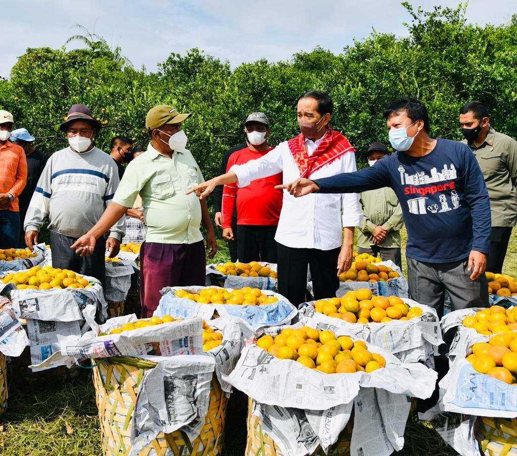 Setibanya di Desa Kutambelin, Liang Melas Datas, Kabupaten Karo, Presiden Jokowi bersama rombongan langsung menuju Kampung Jeruk untuk melakukan Peninjauan Jalan sepanjang Liang Melas Datas yang melintasi Kampung Jeruk sekaligus berdialog dengan para petani jeruk.