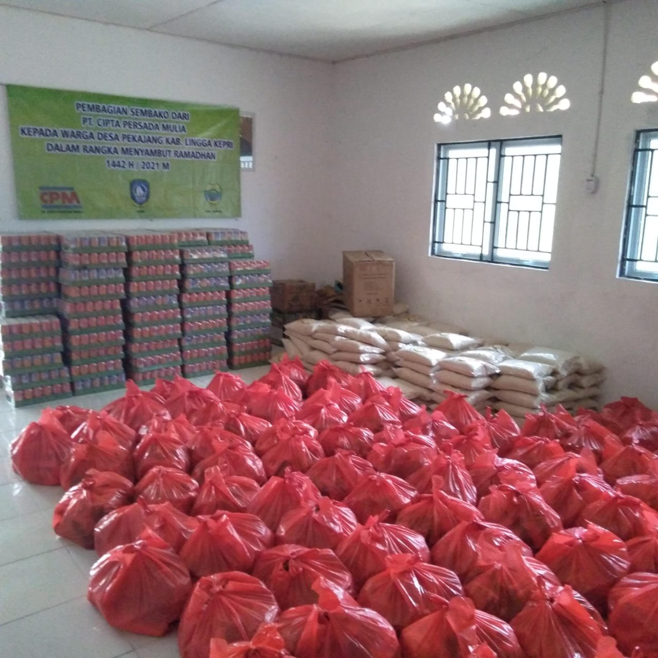 Kegiatan penyerahan bantuan tersebut di laksanakan di aula balai desa secara simbolis di serah kan oleh Perry Kemit GM PT.CPM dan diterima Pjs. Kades Pekajang dengan disaksikan para perangkat desa dan tokoh masyarakat pekajang dan beberapa perwakilan pihak dari Prusahaan. Tutup Sekdes.