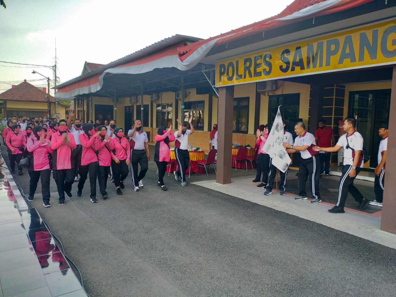 CAHAYANEWSKEPRI.COM — Pukul 06.30 WIB Kapolres Sampang Arman S.IK, M.Si dan Ketua Bhayangkari Cabang Sampang Ny. Eka Arman melepas rombongan peserta jalan santai yang diikuti Wakapolres Sampang Kompol Jalaludin beserta PJU Polres Sampang, Kapolsek jajaran, Perwira staf dan Bintara serta pengurus cabang Bhayangkari Sampang.