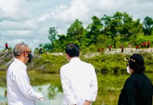 CAHAYANEWSKEPRI.COM – “Kita tahu ini adalah bekas pertambangan emas kira-kira tahun ’90-an. Kemudian tadi kita telah menanam vegetasi pohon baik itu buah-buahan dan spesies-spesies yang lainnya,” ujar Presiden di lokasi penanaman.