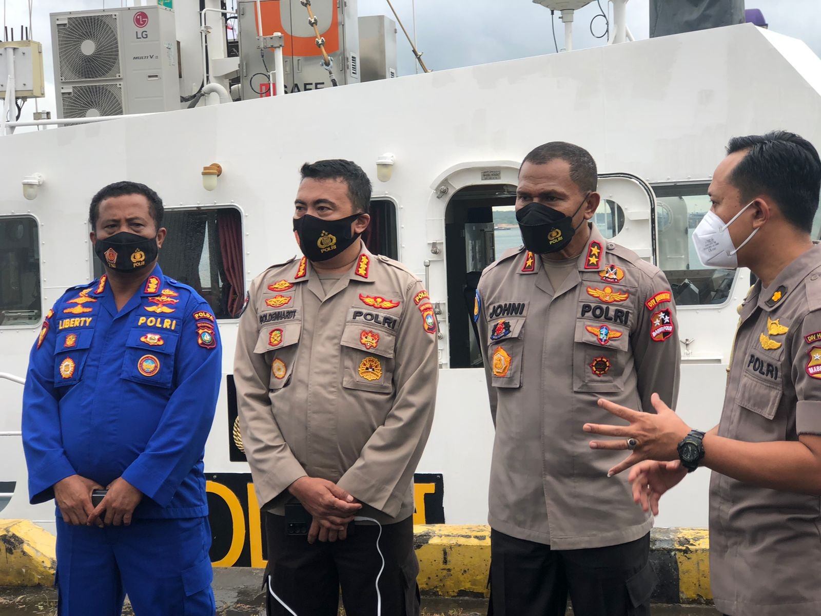Dalam kesempatan tersebut Kaops Misi Kadivhubinter Irjen Pol Drs. Johni Asadoma, M.Hum., mengatakan “Saat ini kita berada Kapal Laksamana 7021 yang bergerak dari Batam menuju ke Johor Bahru Malaysia. Kapal ini membawa Satgas Misi Kemanusiaan Internasional yang terdiri dari Satgas Divhubinter Polri, Bareskrim Polri, DVI Polri, Dit Polairud, Kemenlu, BP2MI yang mana semua tergabung dalam Satgas Misi Kemanusiaan Internasional.” Ungkap Kaops Misi Kadivhubinter Irjen Pol Drs. Johni Asadoma, M.Hum.
