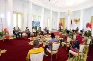 Bogor – Presiden Joko Widodo (Jokowi) mengapresiasi langkah Asosiasi Pemerintah Kabupaten Seluruh Indonesia (Apkasi) dalam menggerakkan ekonomi daerah di tengah situasi pandemi. Hal ini disampaikan Jokowi saat meresmikan kegiatan Apkasi Otonomi Expo 2021 dari Istana Kepresidenan Bogor, Rabu (20/10/2021) didampingi Menteri Sekretaris Kabinet Pramono Anung dan Menteri Dalam Negeri Muhammad Tito Karnavian.