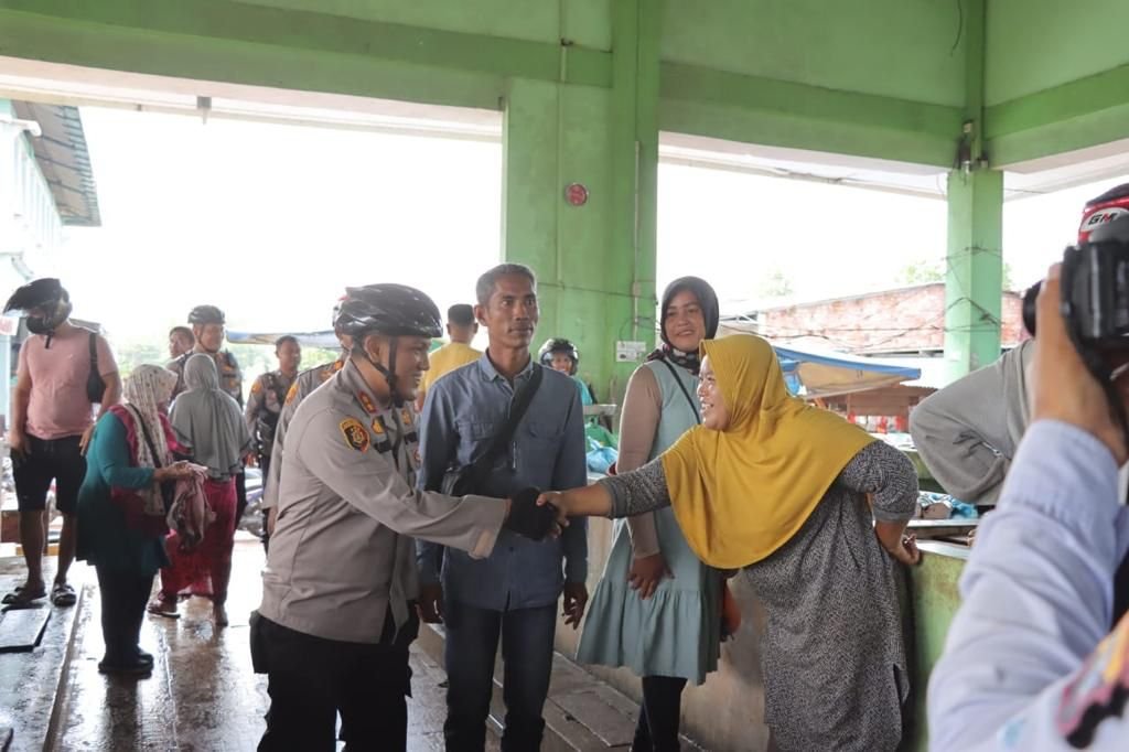 Meranti – Kapolres Kepulauan Meranti, Polda Riau, AKBP Andi Yul LTG SH SIK MH, pada kemaren Rabu (30/11/2022) pagi, melaksanakan kegiatan Bersepeda Sapa Masyarakat (Bersama) dan blusukan ke pasar moderen Tanjung harapan Selatpanjang, Kecamatan Tebingtinggi.