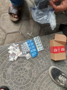 “Secara Tanpa hak memiliki, menyimpan dan/atau membawa Psikotropika dan dengan sengaja memproduksi atau mengedarkan sediaan farmasi yang tidak memenuhi standar dan atau persyaratan keamanan, khasiat atau kemanfaatan dan mutu,” terang AKP Agus.