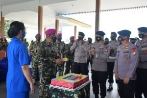 Batam – Dalam rangka Hut Korps Marinir yang Ke-76, jajaran Satbrimob Polda Kepri memberikan kejutan ke Mako Yonif 10 Marinir/Satria Bhumi Yudha (SBY) dan Mako Yonmarharlan lV Tanjung Pinang. Senin (15/11/2021).