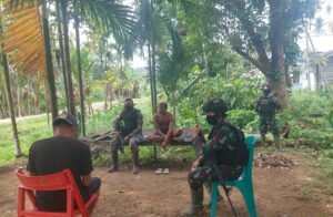 Keerom – Dalam rangka menjaga kemanunggalan antara TNI-Rakyat dan mempererat tali silaturahmi dan selalu dekat dengan masyarakat , Satgas Pamtas RI-PNG Yonif 711/Rks melakukan kegiatan anjang sana kepada masyarakat di Kampung Wembi, Kabupaten Keerom, Jayapura, Jum’at (07/01/2021).
