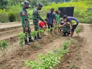 Sanggau – Satgas Pamtas Yonif Mekanis 643/Wns mengadakan kegiatan penyuluhan tentang ketahanan pangan bagi para pemuda dan kelompok tani di dusun Palapasang, Desa Pasalapasang, Kecamatan Entikong, Kabupaten Sanggau.
