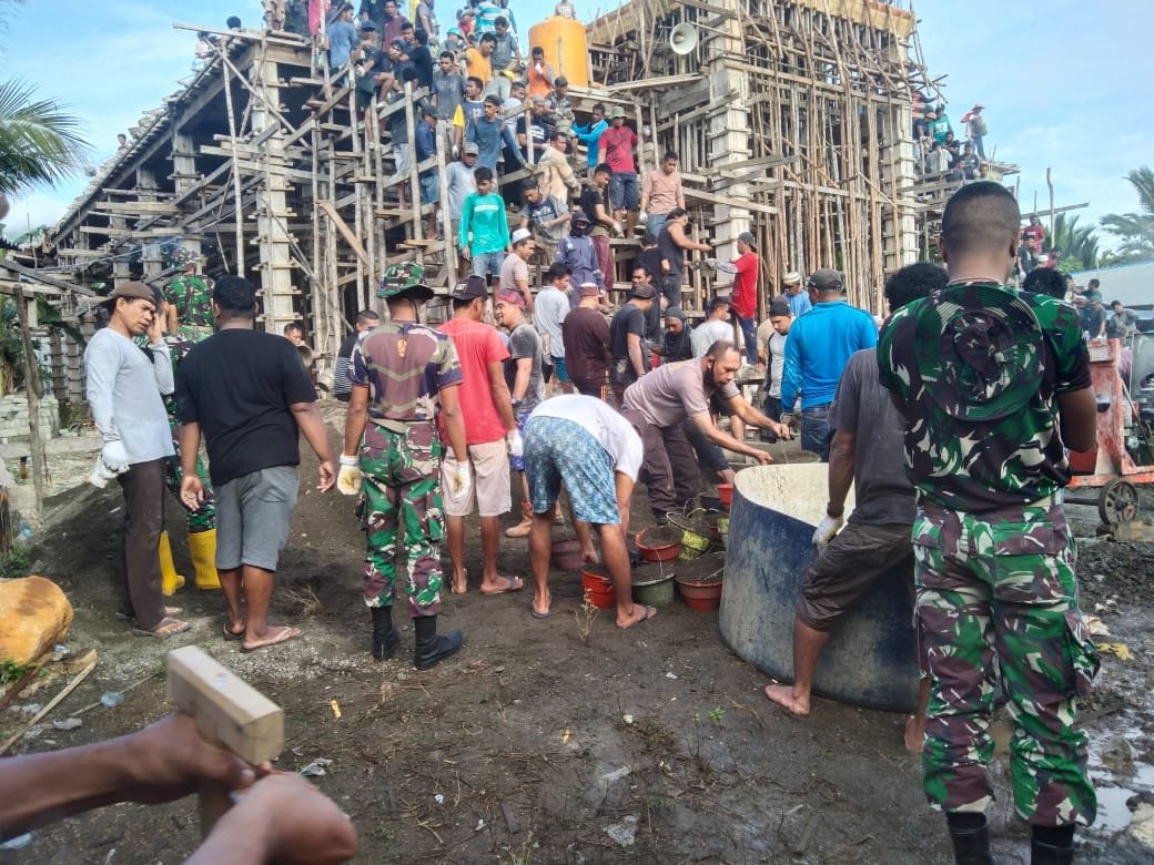 Jakarta – Mendekati Bulan Suci Ramadhan, Pos 6 Buli SSK I Satgas Yonif Raider Khusus 732/Banau bersama Koramil Maba Dan Polres Haltim menggelar karya bakti pengecoran mesjid di Desa Buli Kecamatan Maba, Kabupaten Halmahera Timur.