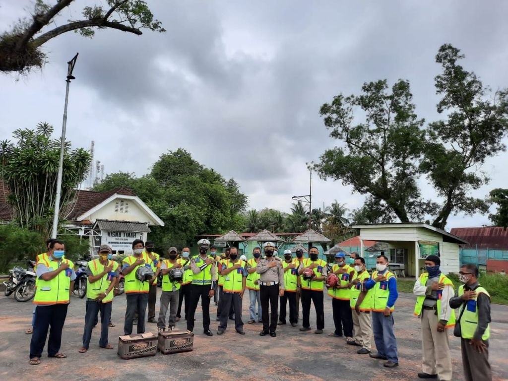 Lingga – Satlantas Polres Lingga Gelar Sosialisasi dan Penyuluhan kepada tukang ojek Dalam Rangka Menciptakan Keamanan, Keselamatan, Ketertiban dan Kelancaran Berlalu Lintas bertempat di Lapangan Wisma Timah Dabo Singkep, Selasa (14/09/2021).