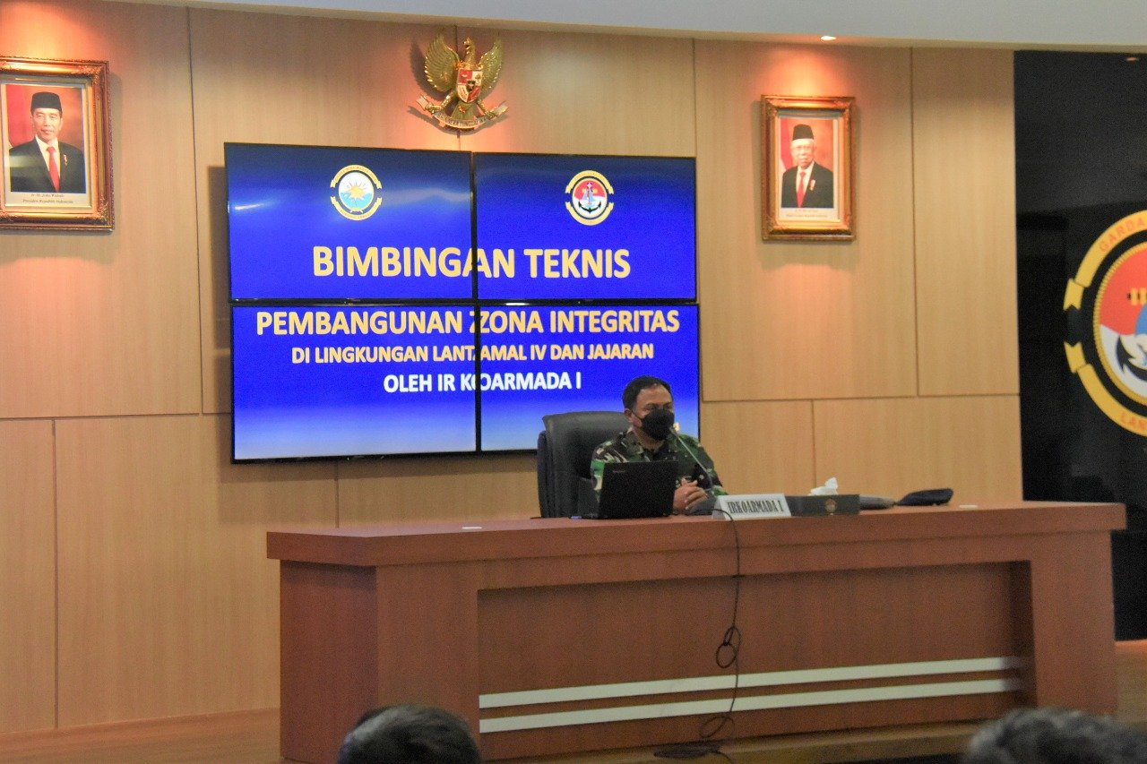Tanjung pinang – Segenap Perwira Pangkalan Utama TNI Angkatan Laut IV (Lantamal IV) dan Lalanl jajaran mengikuti acara Bimbingan Teknis (Bimtek) Pembangunan Zona Integritas yang berlangsung di Gedung Serba Guna (GSG) Yos Sudarso Mako Lantamal IV Jl. Yos Sudarso No. 1 Batu Hitam Tanjung pinang Kepri, Kamis pagi (29/4/2021).