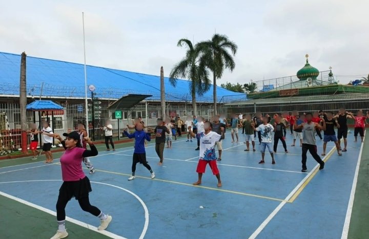 CAHAYANEWSKEPRI.COM – Kegembiraan terlihat pada wajah warga binaan yang mengikuti aktifitas fisik yang dominan menggerak seluruh anggota tubuh tersebut. cuaca yang tidak begitu panas turut menambah semangat mereka dalam mengikuti irama musik yang memandunya. Jika tubuh sehat dan bugar secara fisik, maka kemampuan konsentrasi juga akan meningkat sehingga memudahkan warga binaan dalam mengikuti program pembinaan.