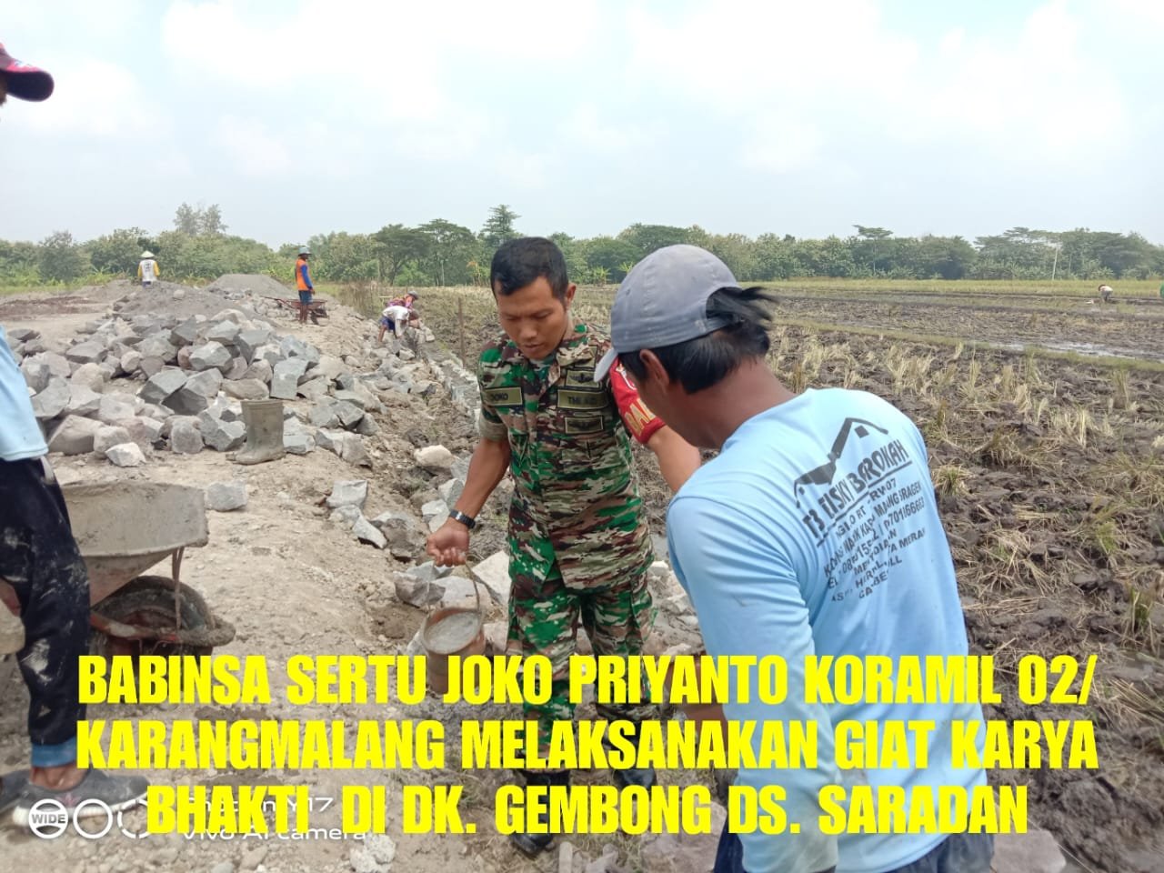CAHAYANEWSKEPRI.COM – Dalam giat tersebut, sembari membantu dalam pengerjaan pembuatan talud irigasi persawahan, Babinsa sambil bersosialisasi dengan warga binaan. Disamping sebagai ajang silaturahim juga sebagai sarana penggalangan mitra karib yang merupakan jaring informasi yg berguna dalam menunjang tugas pokok Babinsa.