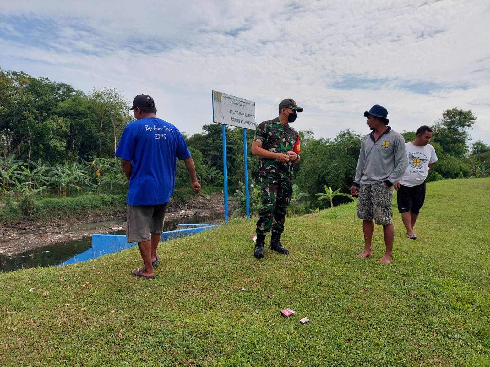 Surakarta – Serka M. Nur Hakib Ramil 03/Serengan Kodim 0735 Surakarta melaksanakan (Komsos) Komunikasi Sosial dengan Warsono (30 Th) Penjaga dan Perawatan Lokasi sekitaran Pintu Air Joyotakan Batas Kota Joyotakan Surakarta dengan Pralan Sukoharjo. Giat tersebut untuk terus menjaga hubungan keharmonisan dengan masyarakat sesuai motto TNI Kuat Bersama Rakyat, (29/01/2022).