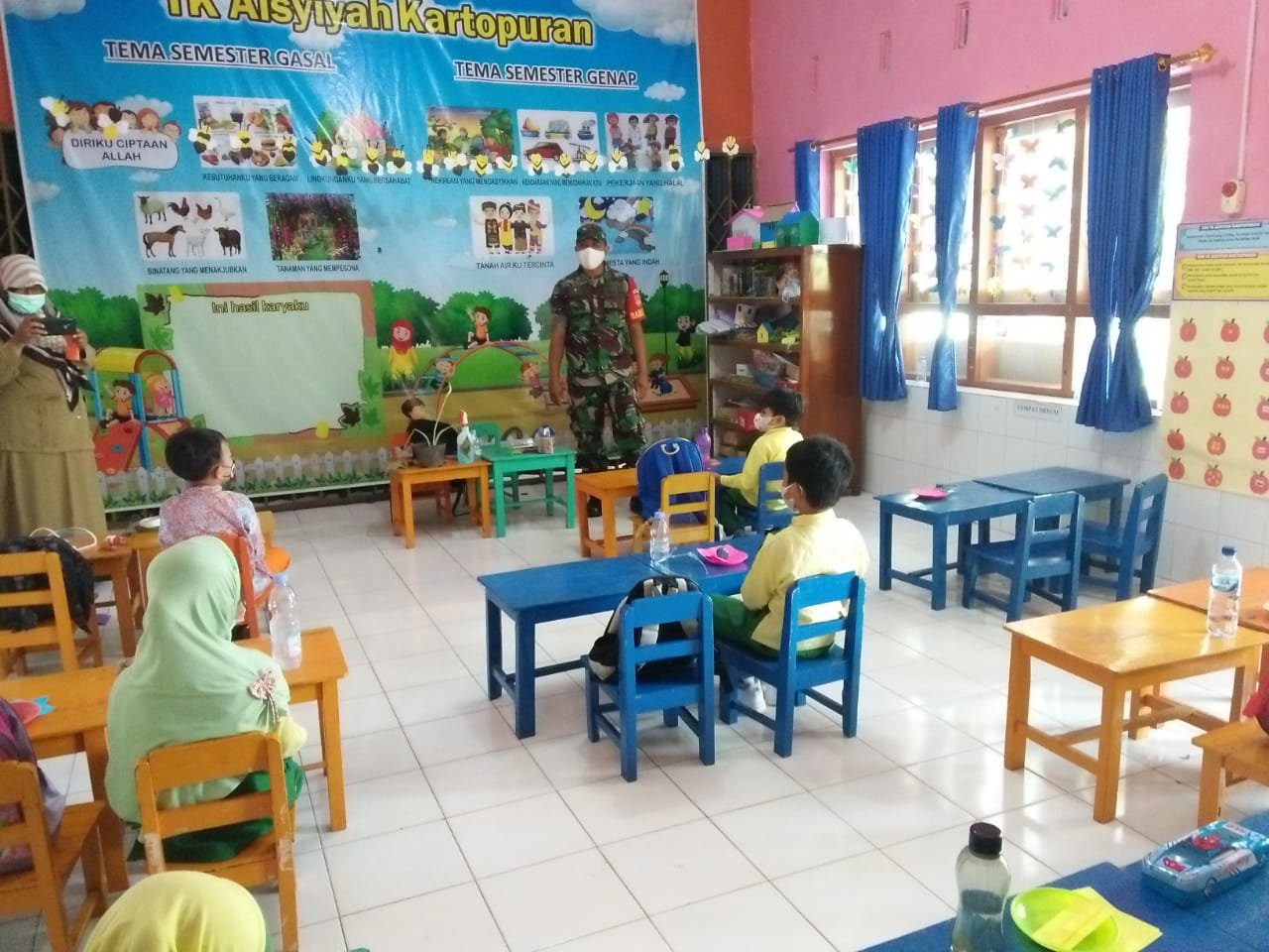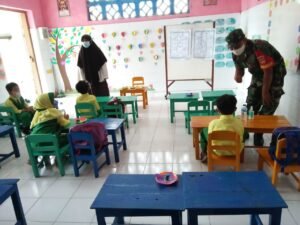 Kodim Surakarta – Sertu Rohmad Babinsa Kelurahan Jayengan Koramil 03 Serengan Kodim 0735/Surakarta Melaksanakan pemantaun PTM di SD Darussalam Jl. Kertopuran Kelurahan Jayengan Kecamatan Serengan Kota Surakarta dan TK Aisyiah, Senin (22/11/2021).