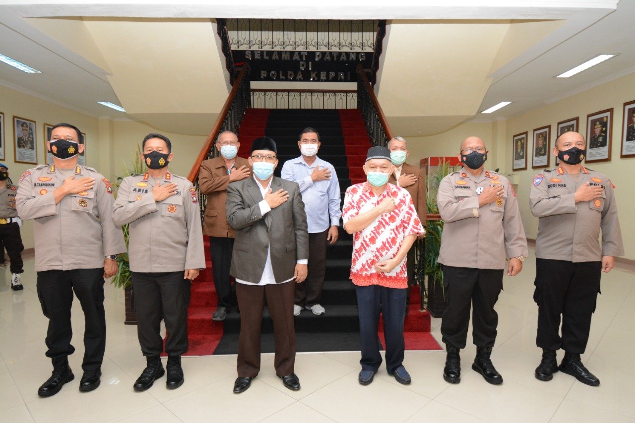 Batam – Kapolda Kepri Irjen Pol Dr. Aris Budiman, M.Si menerima kunjungan Silaturahmi Ketua FKUB Provinsi Kepri Ahars Sulaiman, Ketua MUI Provinsi Kepri, Ketua Muhammadiyah Kota Batam, Ketua PW NU dan para perwakilan Tokoh agama di Provinsi Kepri. Bertempat di Lobby Utama Polda Kepri dan dihadiri oleh Wakapolda Kepri, Irwasda Polda Kepri dan Pejabat Utama Polda Kepri serta para perwakilan tokoh agama. Rabu (5/5/2021).