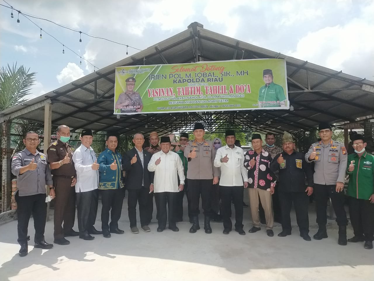 Di awal kunjungannya, Kapolda Irjen Iqbal menyalurkan bantuan yang ditujukan kepada anak yatim piatu. Bantuan berupa 40 karung beras dan tali asih, diserahkan bersama-sama Pengurus PWNU Riau dan undangan yang hadir pada siang itu.
