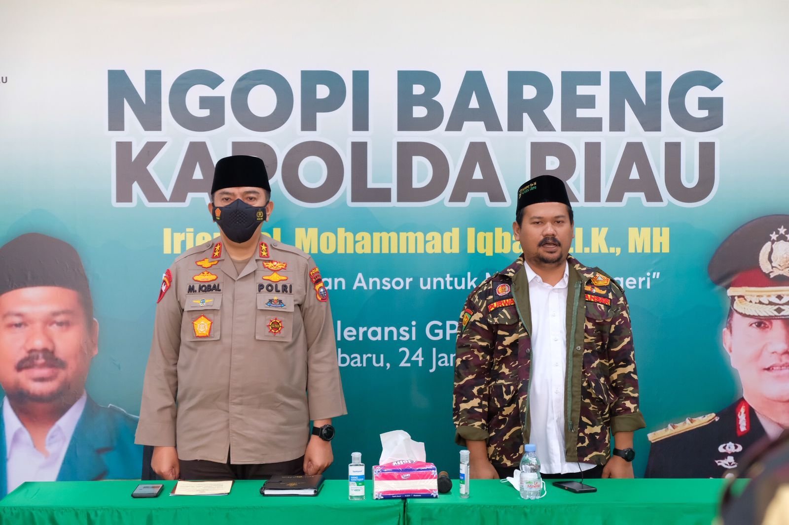 Ketua GP Ansor Purwaji mengatakan terimakasihnya kepada Kapolda, kerjasama dan sinergitas selama ini terjalin dengan baik dengan Polda Riau.