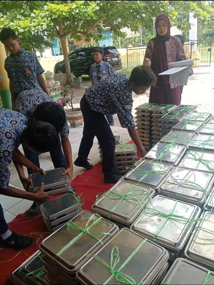 Sejak pukul 07.00 WIB, para siswa sudah mulai berkumpul dengan tertib di halaman sekolah untuk menunggu giliran pengambilan paket makanan. Kegiatan ini merupakan bagian dari program pemerintah dalam meningkatkan gizi dan kesehatan pelajar.