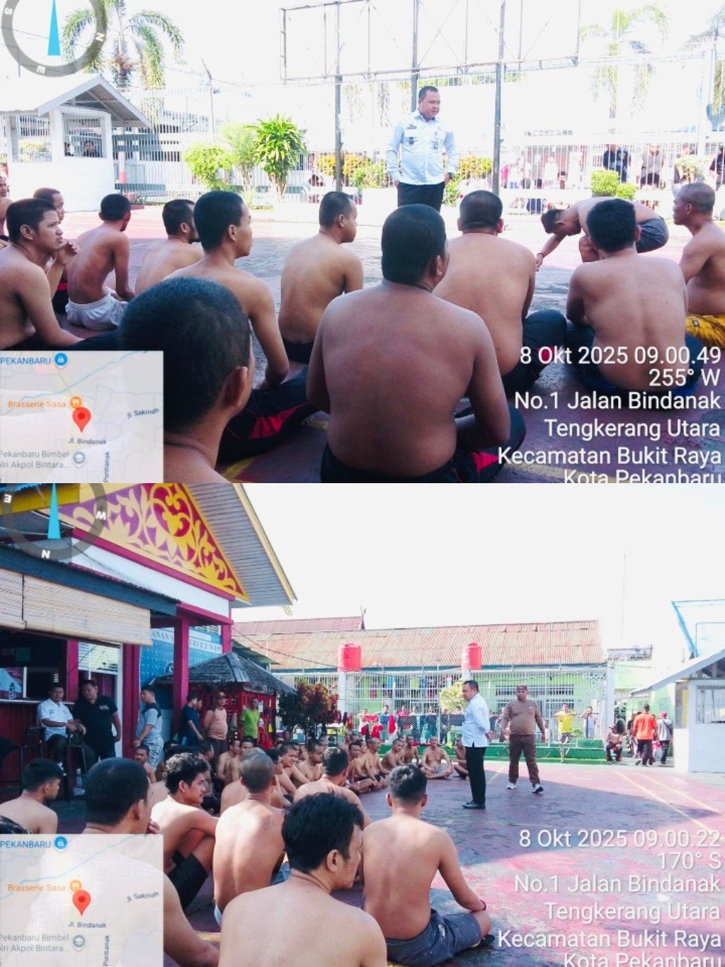 PEKANBARU, INFO_PAS (CNK) – Lembaga Pemasyarakatan (Lapas) Kelas IIA Pekanbaru menggelar sosialisasi Peraturan Menteri Hukum dan Hak Asasi Manusia (Permenkumham) Nomor 8 Tahun 2024 tentang Penyelenggaraan Keamanan dan Ketertiban pada Satuan Kerja Pemasyarakatan, pagi ini. Kegiatan yang berlangsung di Aula Sahardjo Lapas Pekanbaru dan diikuti oleh seluruh Warga Binaan Pemasyarakatan (WBP) sebagai upaya meningkatkan pemahaman dan kepatuhan terhadap regulasi di lingkungan Pemasyarakatan. Sosialisasi dimulai pukul 09.00 WIB dan berlangsung hingga pukul 11.00 WIB, Rabu (08/10/25).